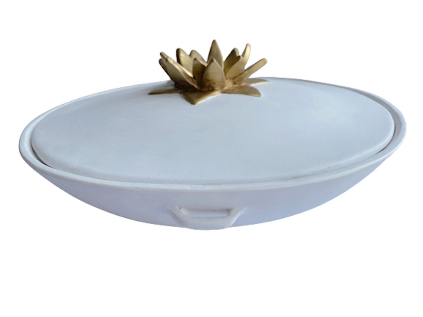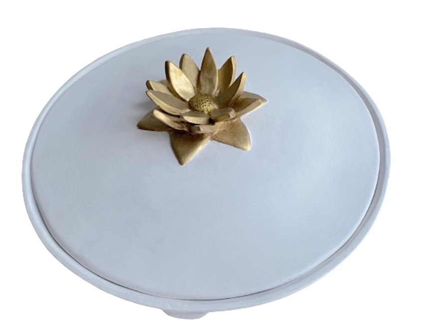 Environmentally friendly biodegradable urn for placement in water. Low-temperature fired urn cast from two types of clay specifically for burial in water. After being placed in water, the urn floats a few meters and then sinks. The urn completely disappears and dissolves in the water in about half a day.